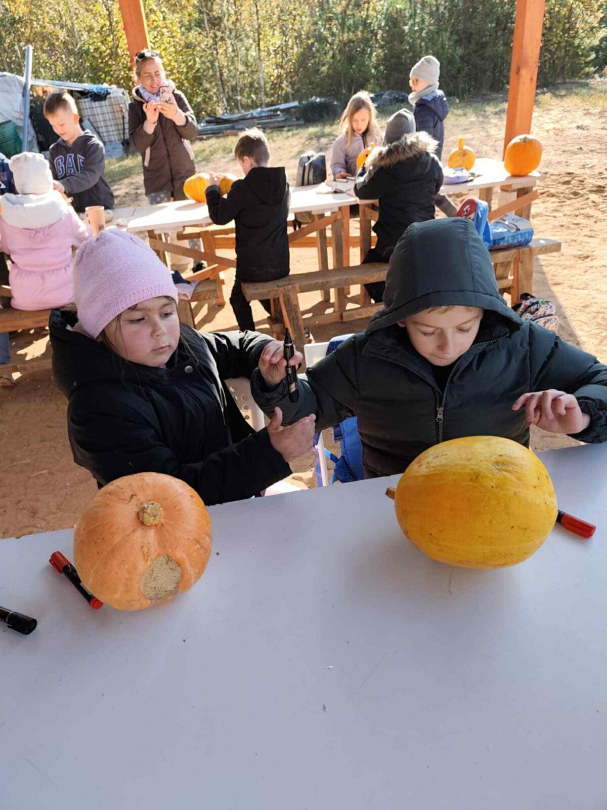 Auksinis ruduo tęsiasi ir dovanoja nuostabius gamtos vaizdus ir orus. Šiandien tokią nuostabią spalio dieną mūsų mokyklos antrokai išsiruošė į įšvyką šilauogių ir levandų ūkyje. Čia patyrė labia daug nuostabių nuotykių: žemėlapio pagalba turėjo orentuotis teritorijoje ir įminti rastas mįsles bei iš nurodytų raidžių sudėlioti dienos šūkį. Jis buvo “Gera draugauti”. Kekvienas ant laužo išsikėpė savo blynų ir juos ragavo su šilauogių uogiene, užsigerdami levandų arbata. O dėžėse nekantraudami laukė daržo karaliai – molūgai, kada gi juos mokiniai išpuoš rudeniniais raštais. Prieš atsisveikindami su ūkio šeimininkais dar išbandėme basomis kojomis – basų kojų taką. Patyrėme ką reiškia pėdomis jausti vilnos švelnumą, grikių lukštų čežėjimą ar žviro kutenimą. Grįžome puikios nuotaikos ir su išpuoštu moliūgu rankose.