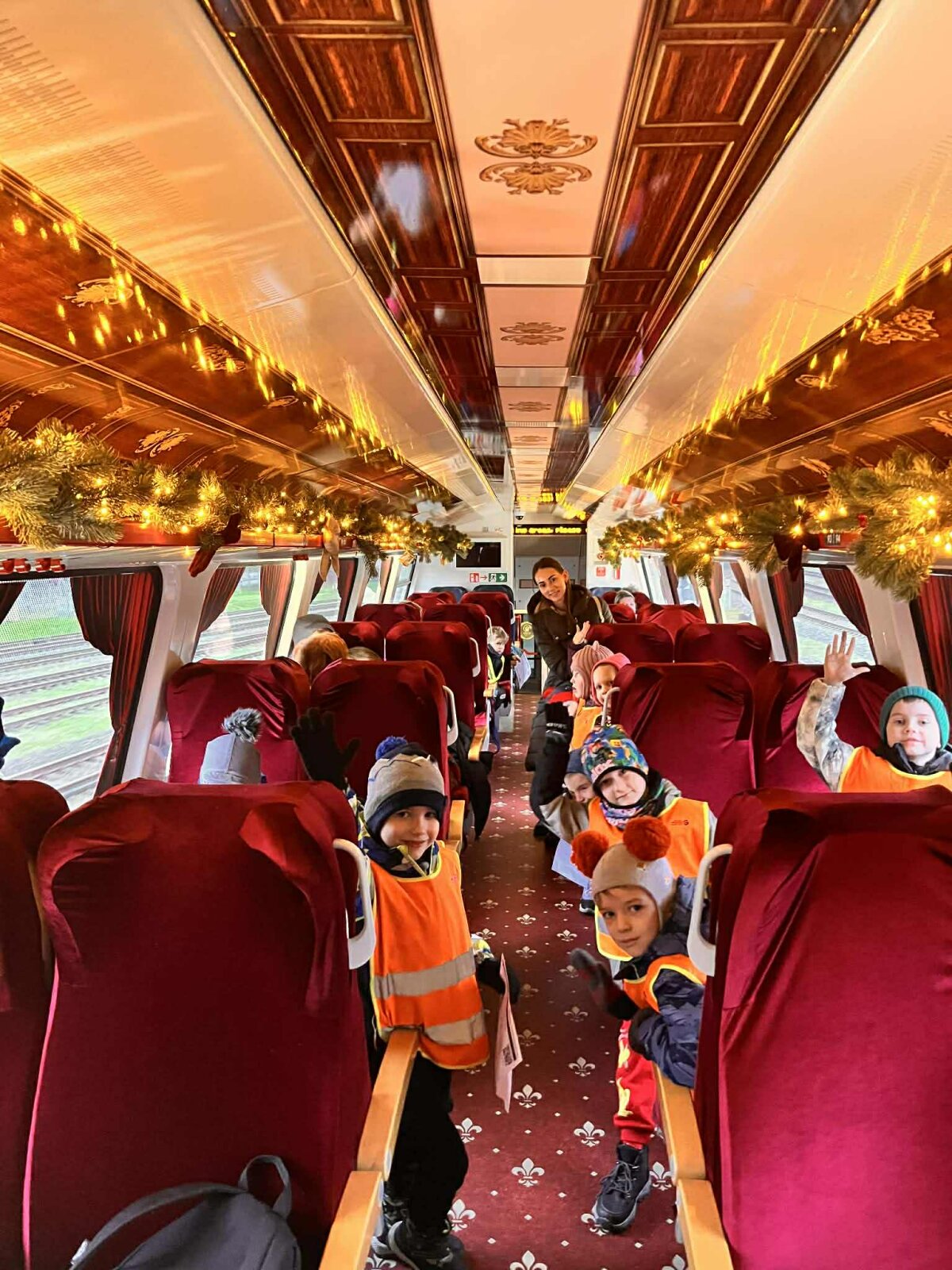„Ežiukų“ ir „Pelėdžiukų“ grupių vaikai leidosi į ypatingą žiemos nuotykį – jie keliavo į Vilnių traukiniu. Atvykę į sostinę, vaikai aplankė išpuoštą Vilniaus geležinkelio stotį. Čia juos sužavėjo kalėdinės dekoracijos, žibančios eglutės ir jauki šventinė atmosfera. Pasigrožėję ir pasidžiaugę žiemos stebuklais, vaikai sugrįžo atgal kalėdiniu traukiniu. Vos įlipę į šventiškai pasipuošusį traukinį, mažieji pajuto tikrą Kalėdų dvasią: mirgėjo lemputės, skambėjo muzika, visi dalijosi gera nuotaika ir laukimu.